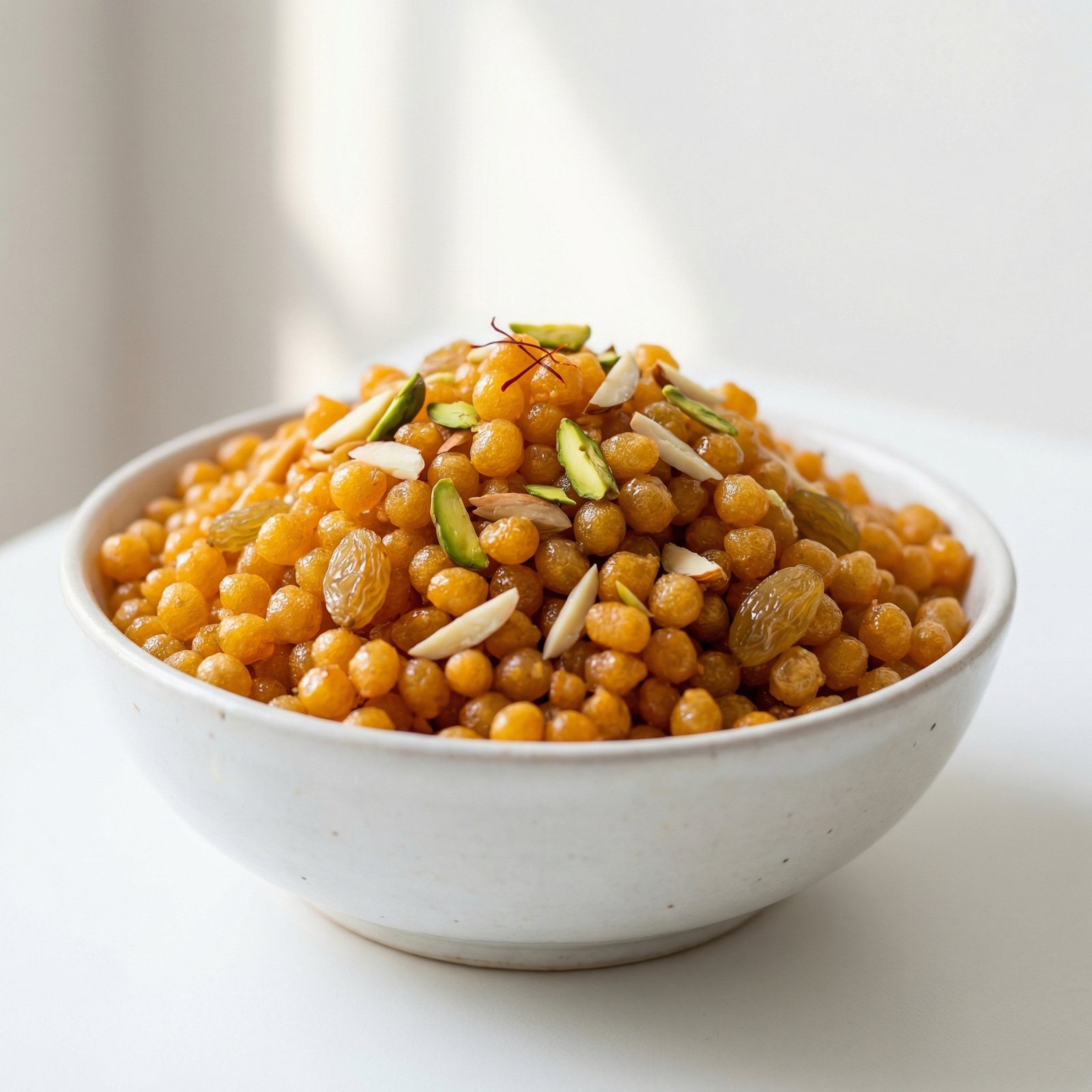 Sweet Boondi is a soft and flavorful sweet made using gram flour, ghee, and sugar. Commonly used for prasad, laddoos, and festive offerings, it is mild, sweet, and aromatic.